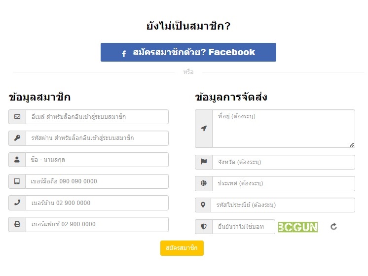 6.กดสมัครสมาชิก เพื่อใส่ข้อมูลที่อยู่ในการจัดส่งสินค้า หรือหากเป็นสมาชิกอยู่แล้ว เข้าสู่ระบบด้วย คอลัมซ้ายมือได้เลย |